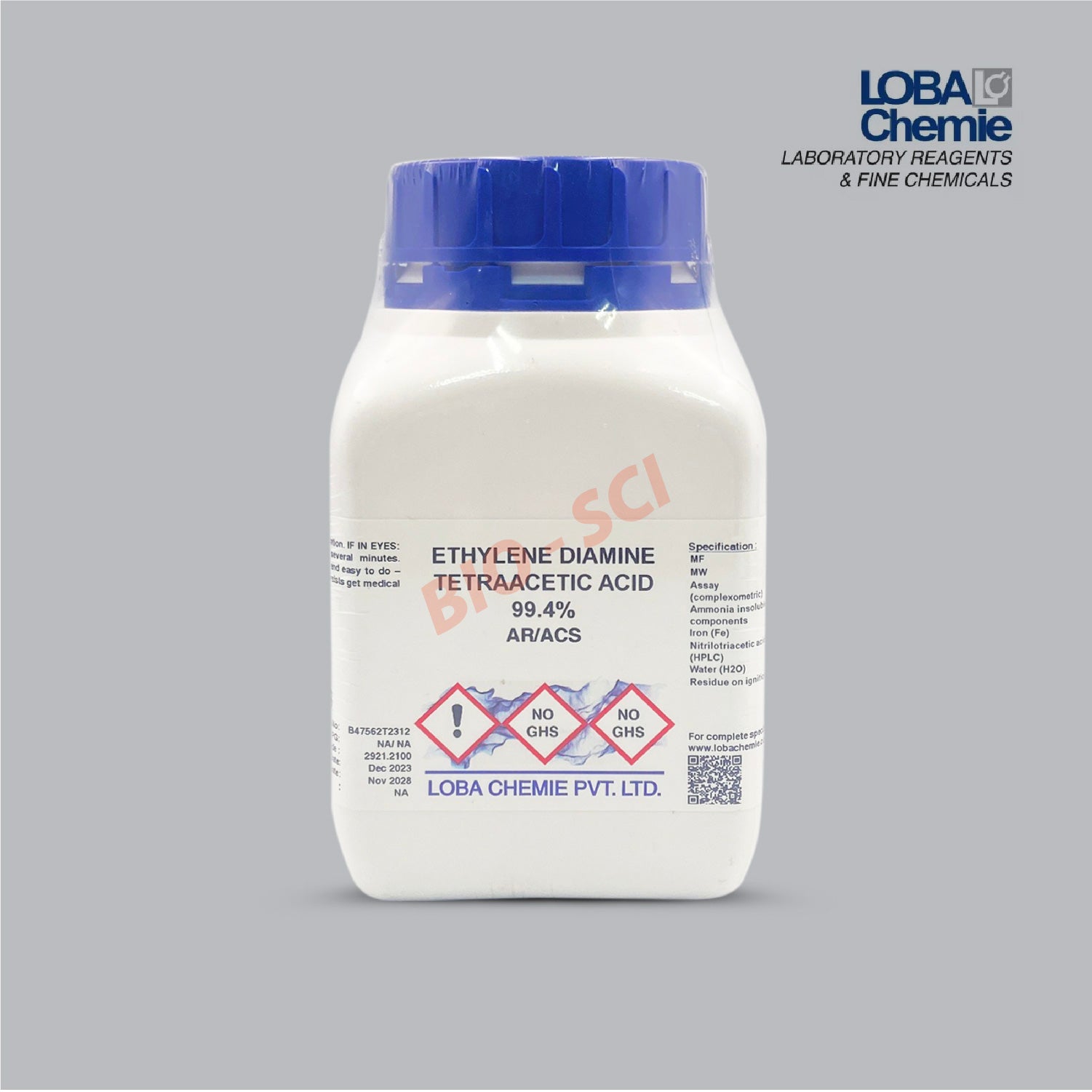 Ethylene Diamine Tetraacetic Acid (EDTA), AR/ACS, 99.4% (LOBA Chemie)