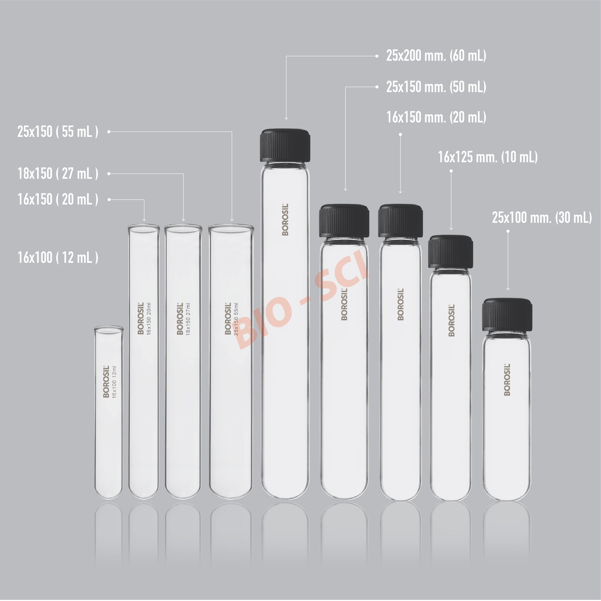 | 25 x 100 mm. | 30 mL | Screw Cap |
