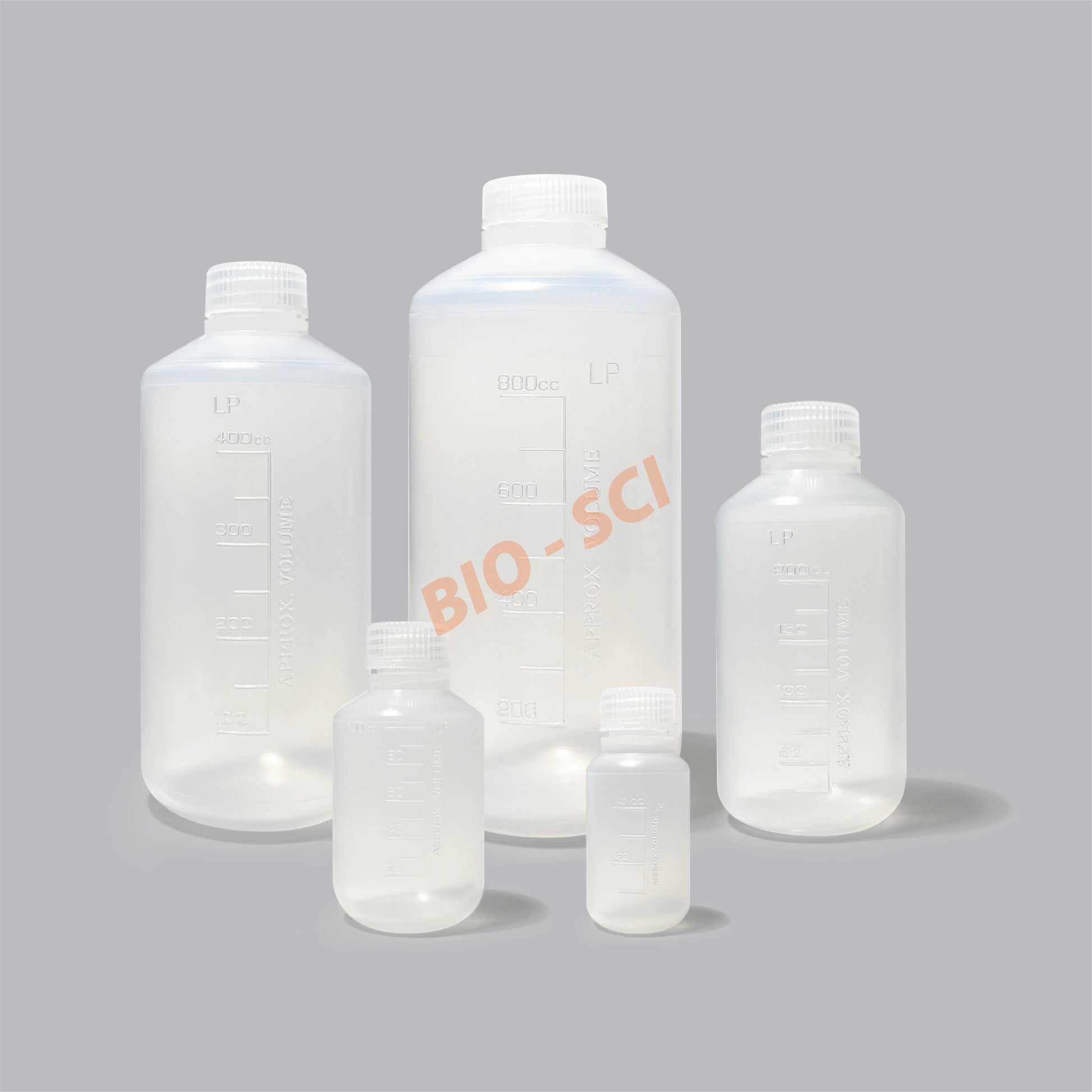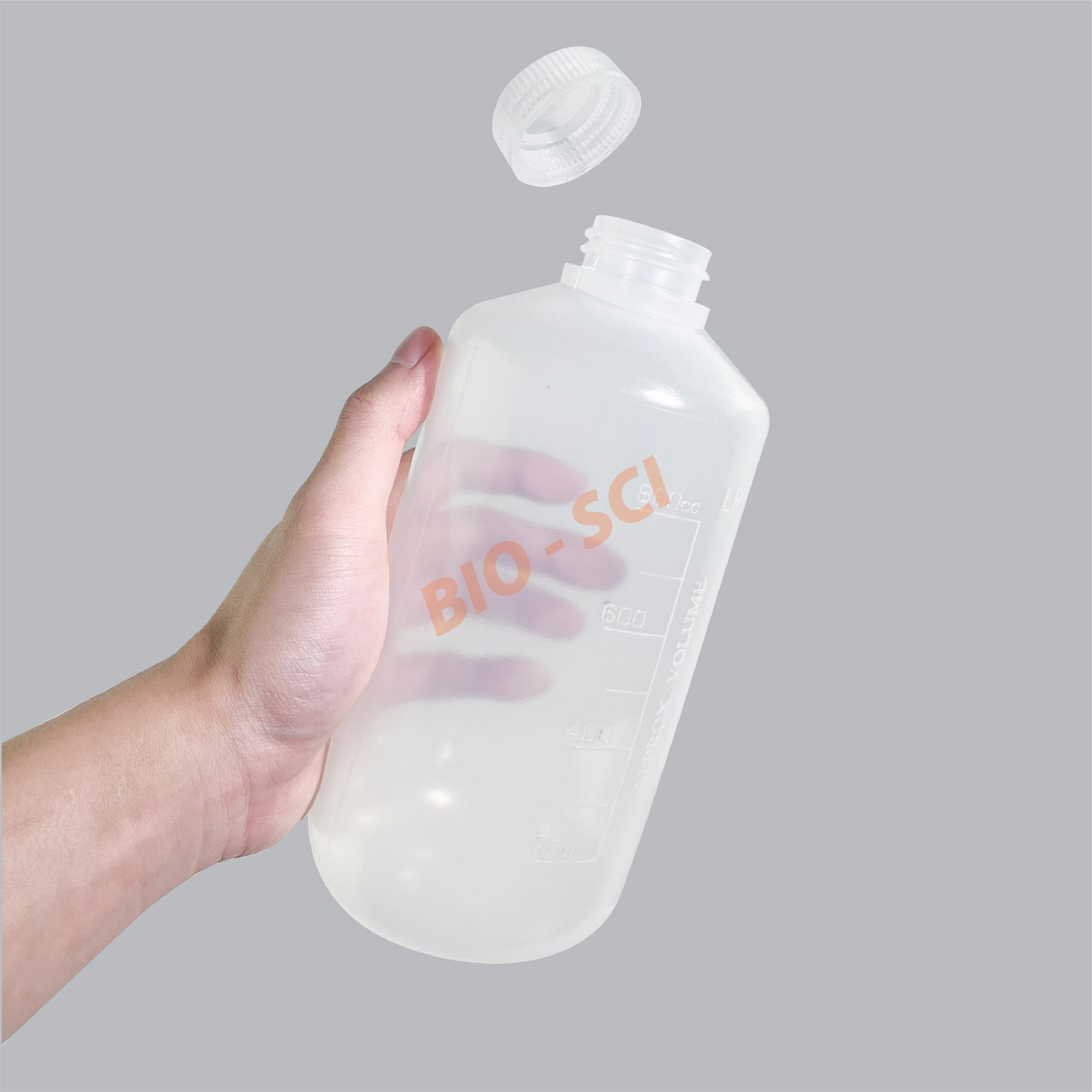 ขวดเก็บสารเคมี ปากแคบ เนื้อพลาสติก Polypropylene (PP); สีขาวขุ่น-ใส
