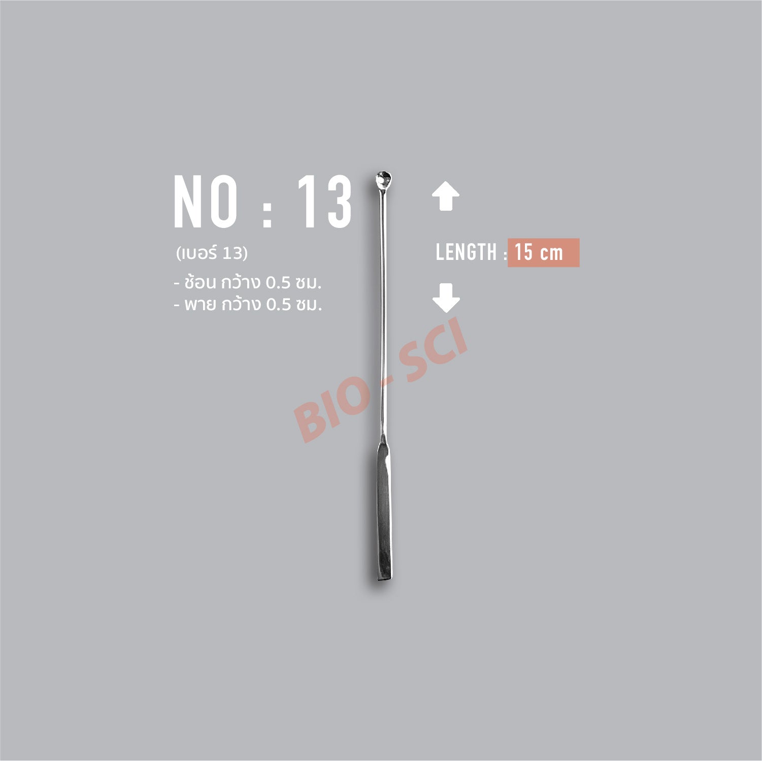 NO : 13 ยาว 15 cm ช้อนกว้าง 0.5 cm / พายกว้าง 0.5 cm